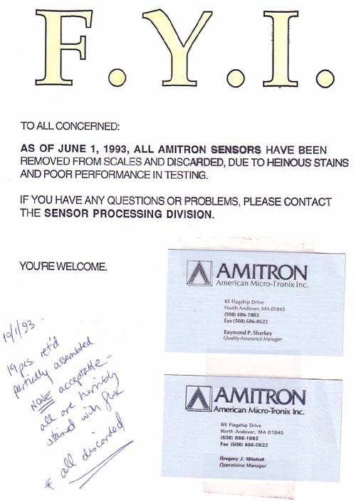 Pretty amazing. Zero out of One Hundred. How do these people stay in business? How did we stay in business? Good Question! Fortunately, none of these hundred remain in customers' scales. |