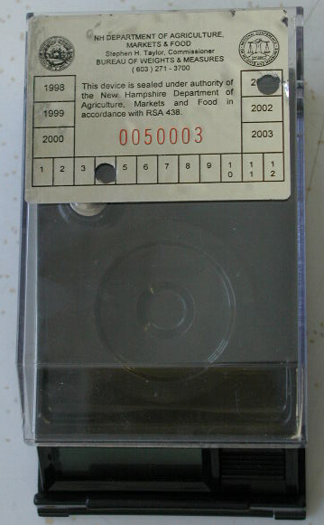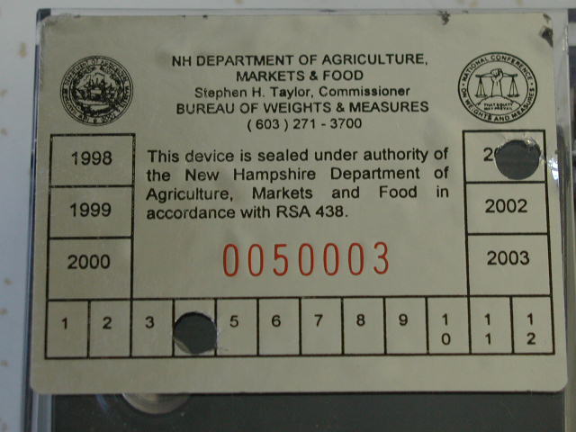 We know of one case in which New Hampshire certified one of our Gemscale-50's as Legal-for-Trade. This certification is actually up to each state. We were never even contacted about this, we just discovered this when the scale was returned to us for a recalibration. And just had to snap these pictures!